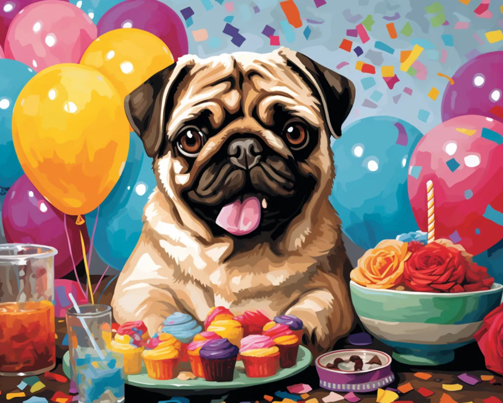 Mopsz Party - Számfestő készlet kereten 40x50