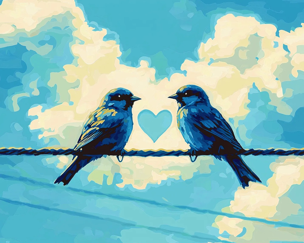 Szárnyas szerelem - Számfestő készlet kereten 40x50