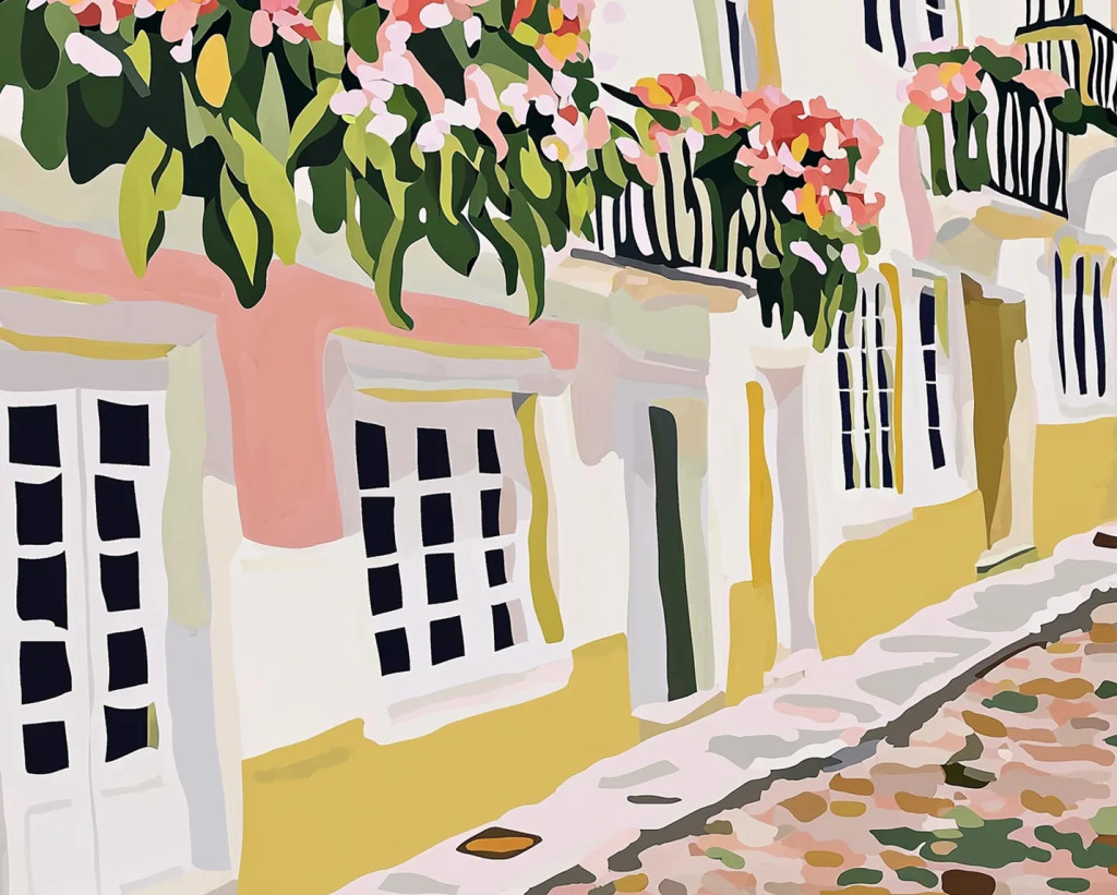 Virágba borult házak - Számfestő készlet kereten 40x50