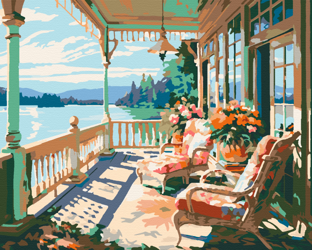 Veranda a tó mellett - Számfestő készlet kereten 40x50