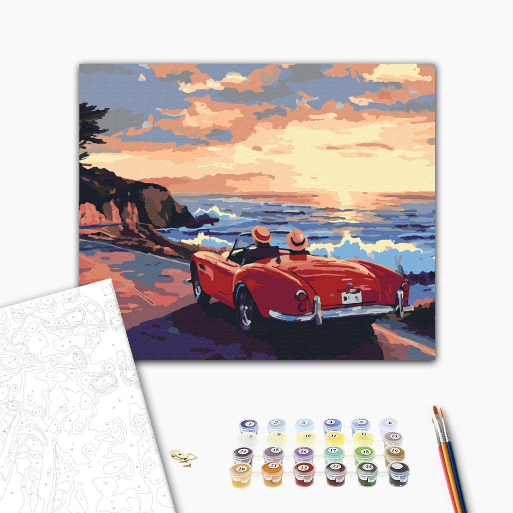 Romantisches Abenteuer am Strand - Malen-nach-Zahlen-Set auf Keilrahmen 40x50