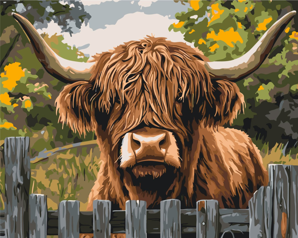 Schottische Kuh - Malen-nach-Zahlen-Set auf Keilrahmen 40x50
