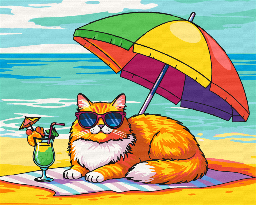Urlaubskatze – Malen nach Zahlen Set auf Rahmen 40x50 cm