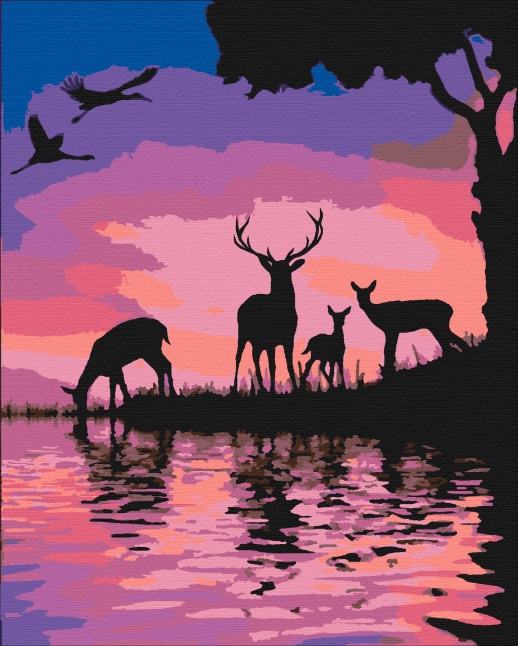 Auf Keilrahmen gespanntes, nummeriertes Malset mit vorgedruckter Leinwand, Acrylfarben, Pinsel und Anleitung.