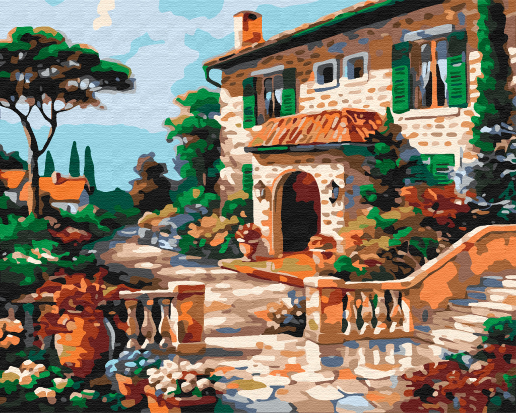 Sonnige Straße - Malen-nach-Zahlen-Set auf Keilrahmen 40x50
