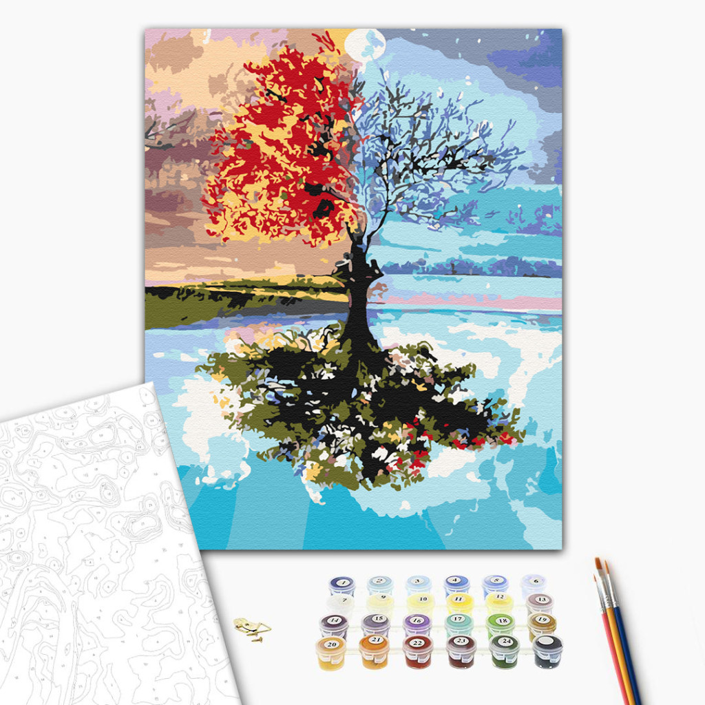 Vier Jahreszeiten - Malen-nach-Zahlen-Set auf Keilrahmen 40x50