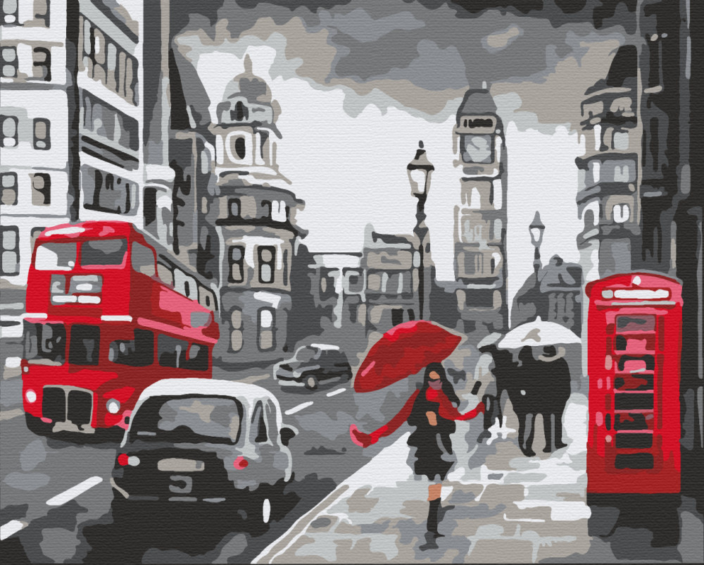 Regnerisches London - Malen-nach-Zahlen-Set auf Keilrahmen 40x50