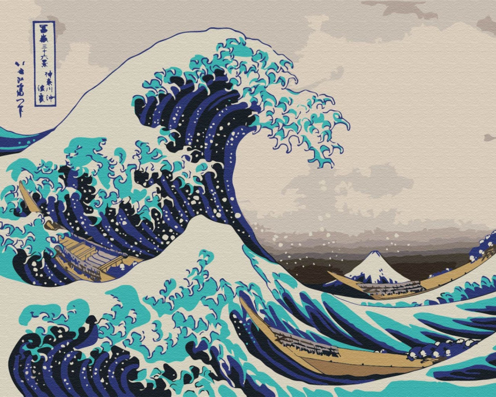Die große Welle vor Kanagawa - Hokusai - Malen-nach-Zahlen-Set auf Keilrahmen 40x50