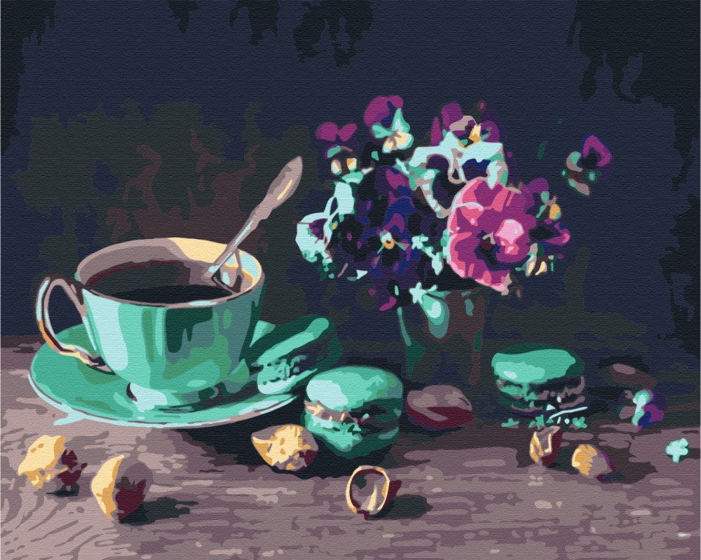 Kaffee mit Macaron - Malen-nach-Zahlen-Set auf Keilrahmen 40x50