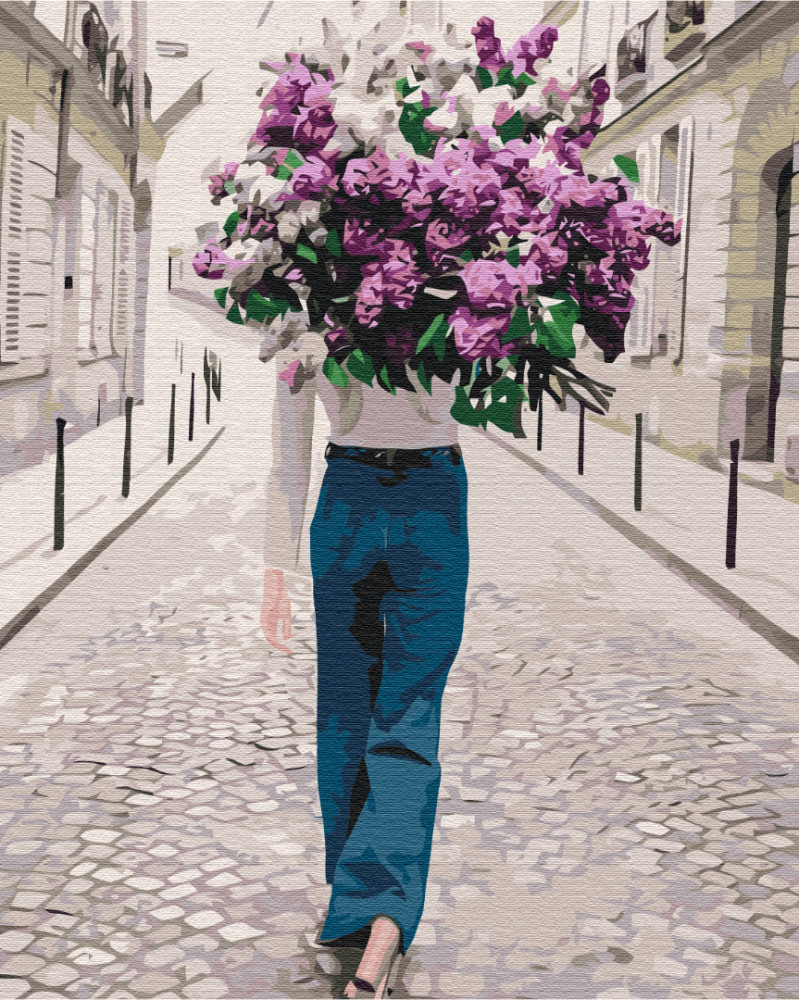 Lila Blumen-Spaziergang - Malen-nach-Zahlen-Set auf Keilrahmen 40x50
