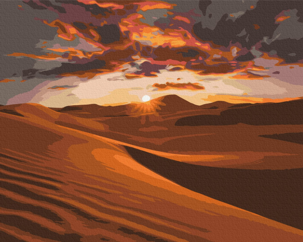 Sonnenuntergang über den Dünen - Malen-nach-Zahlen-Set auf Keilrahmen 40x50