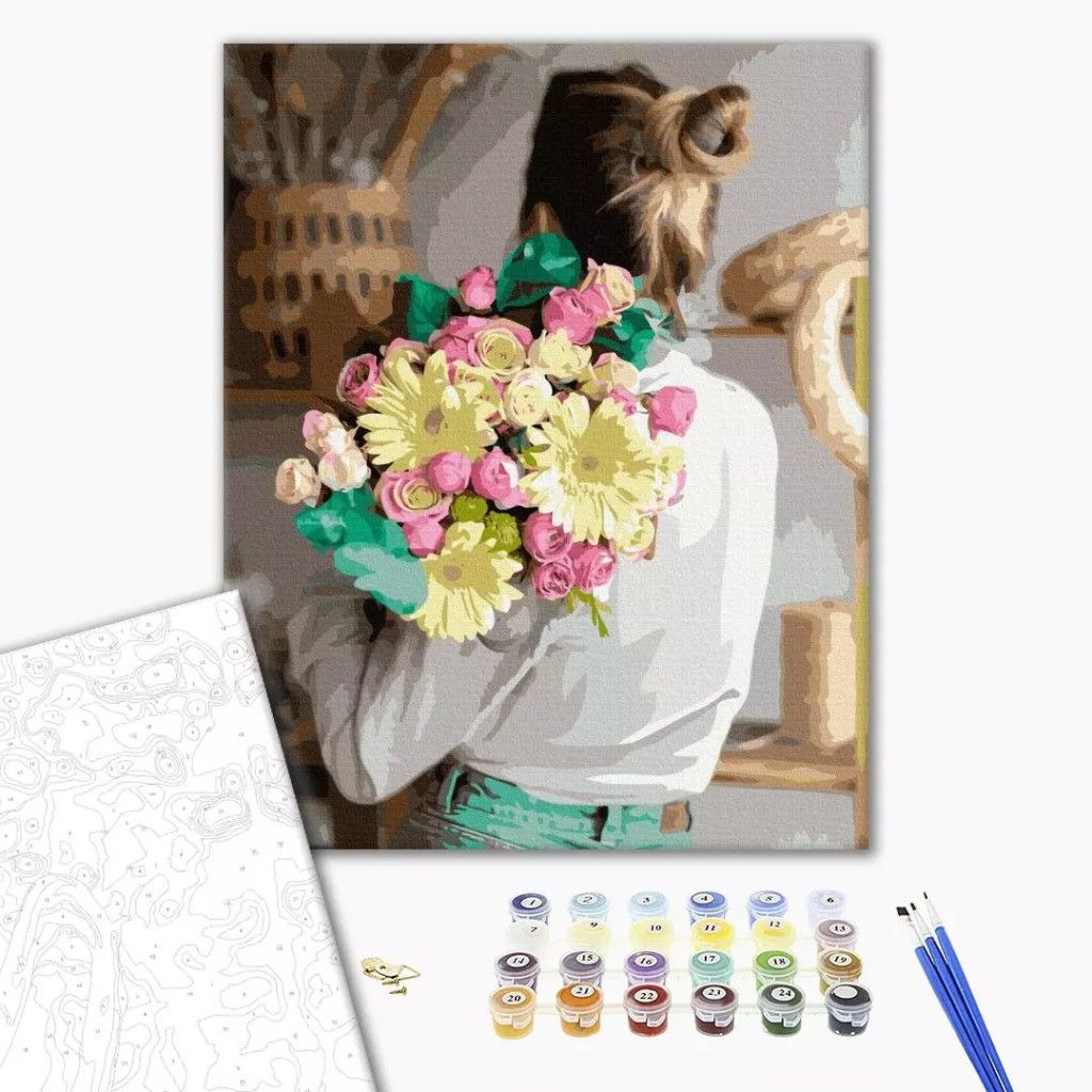 Mädchen mit Blumenstrauß - Malen-nach-Zahlen-Set auf Keilrahmen 40x50