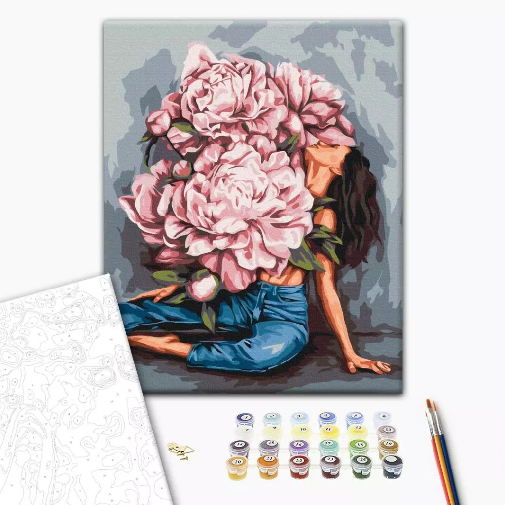 Pfingstrosenflut - Malen-nach-Zahlen-Set auf Keilrahmen 40x50