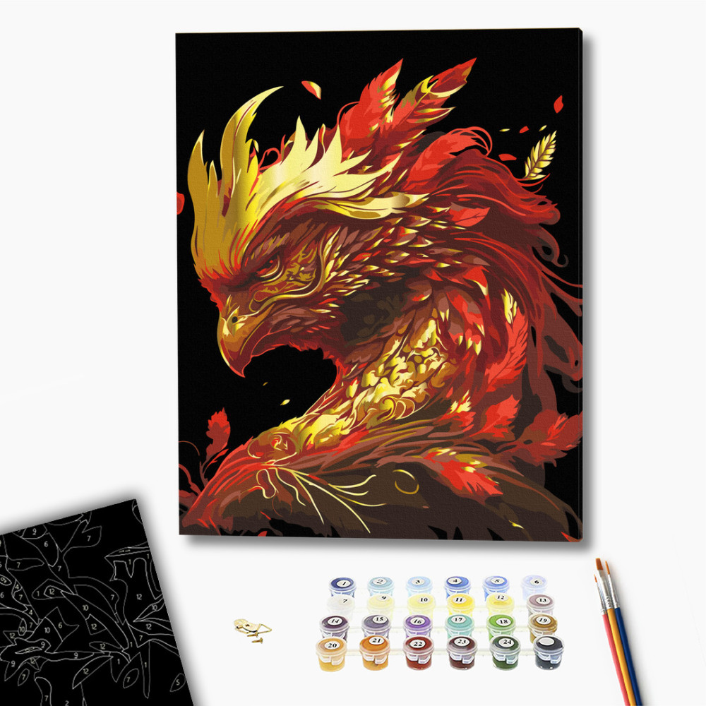 Edler Phönix - Malen-nach-Zahlen-Set auf schwarzer Leinwand, auf Keilrahmen 40x50