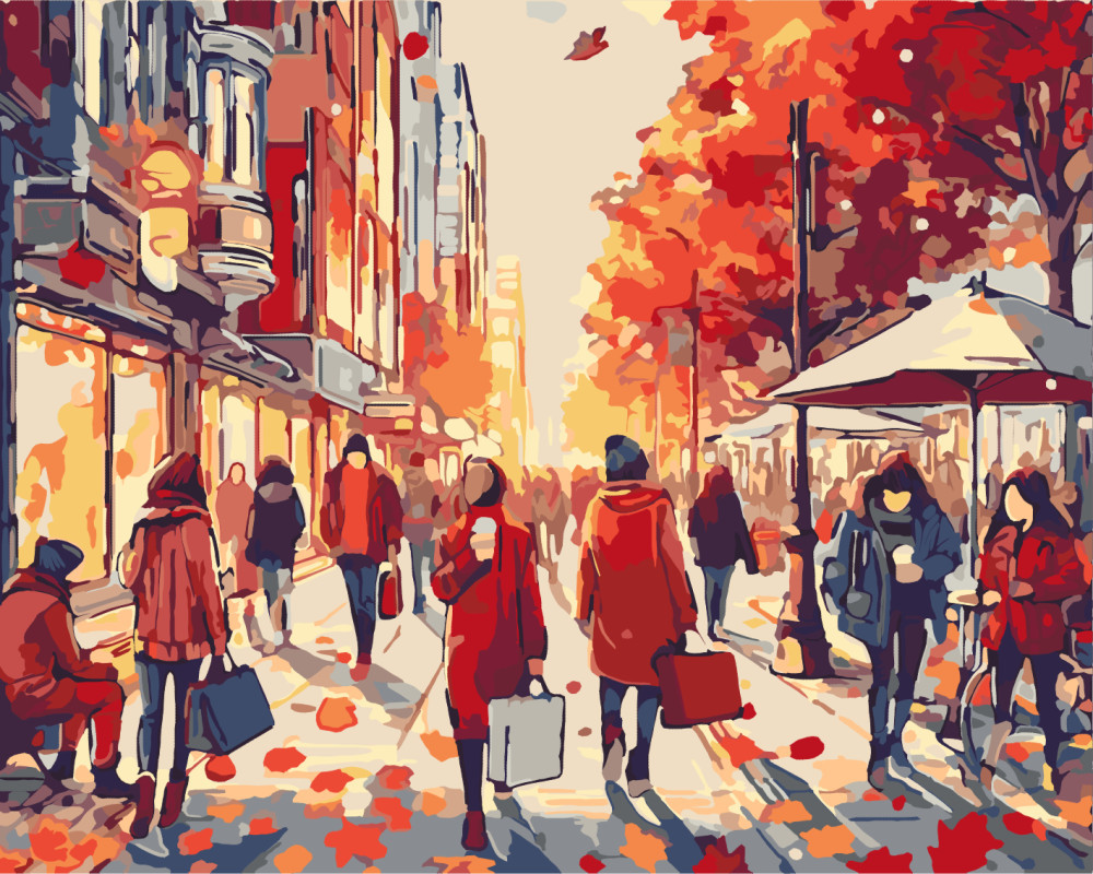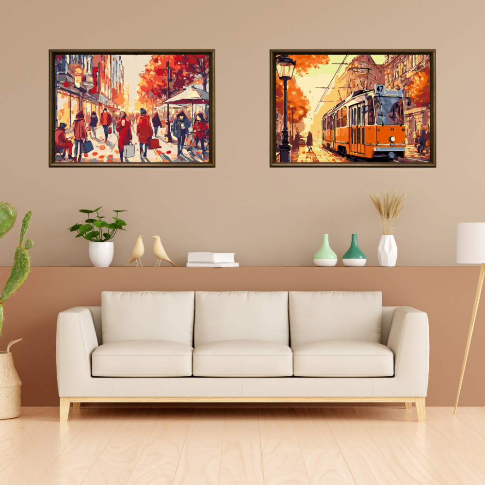 Stadt im Herbst - 2-teiliges Malen-nach-Zahlen-Set auf Leinwand