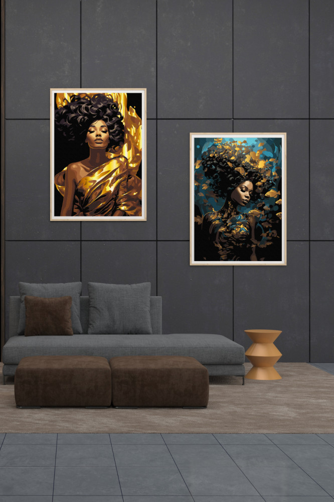 Goldene Eleganz - 2-teiliges Malen-nach-Zahlen-Set auf Leinwand