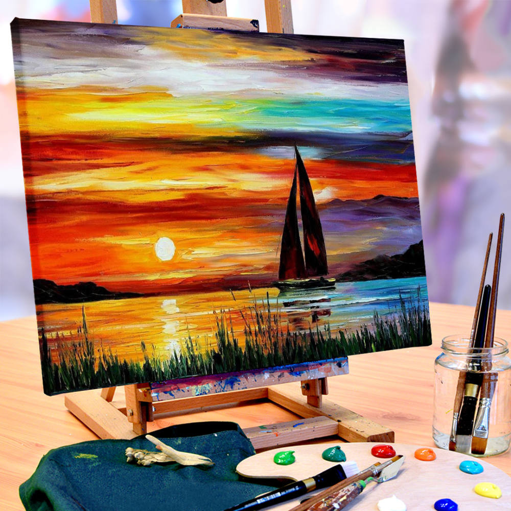 Leonid Afremov, orosz származású festő képei méltán népszerűek. Látványosak, színesek és mindig remek témákat dolgoz föl a művész. Ahogy a lenyugvó nap fénye megcsillan a víztükrön és a naplementében elhajózó vitorlás látványa szemünk elé tárul, tökéletes nyugalmat és békét sugároz.